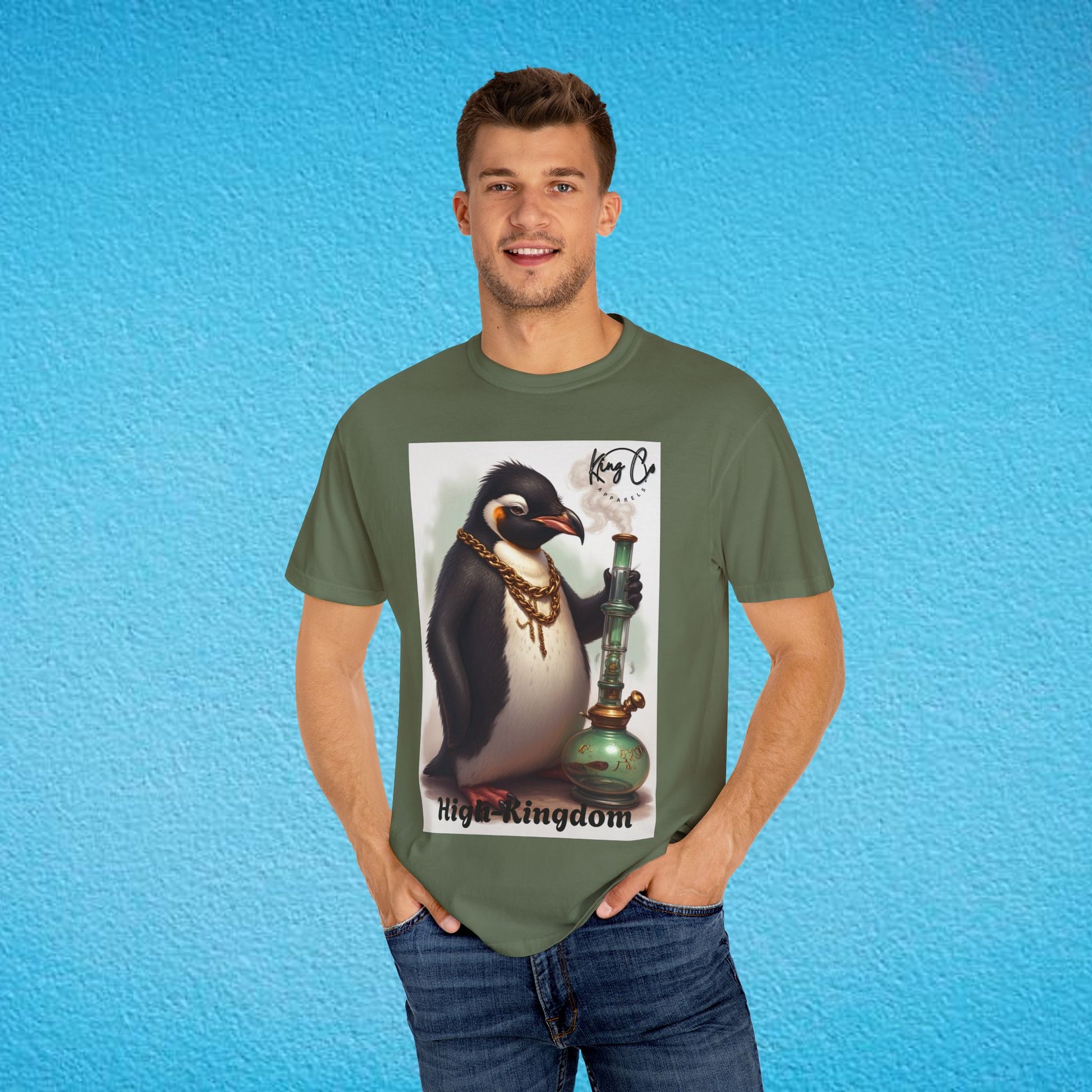 Elevate your casual wardrobe with the KingCoApparels High-Kingdom "Penguin" Unisex Garment-Dyed T-shirt. Crafted for comfort and enduring style, its unique garment-dye process ensures a soft, lived-in feel and rich color depth that only improves with wear. Designed for a relaxed fit that suits all body types, this tee channels a laid-back, effortlessly cool vibe perfect for those who appreciate a stoner-inspired aesthetic without compromising on quality or craftsmanship. Embrace comfort and distinctive style in one versatile piece.\