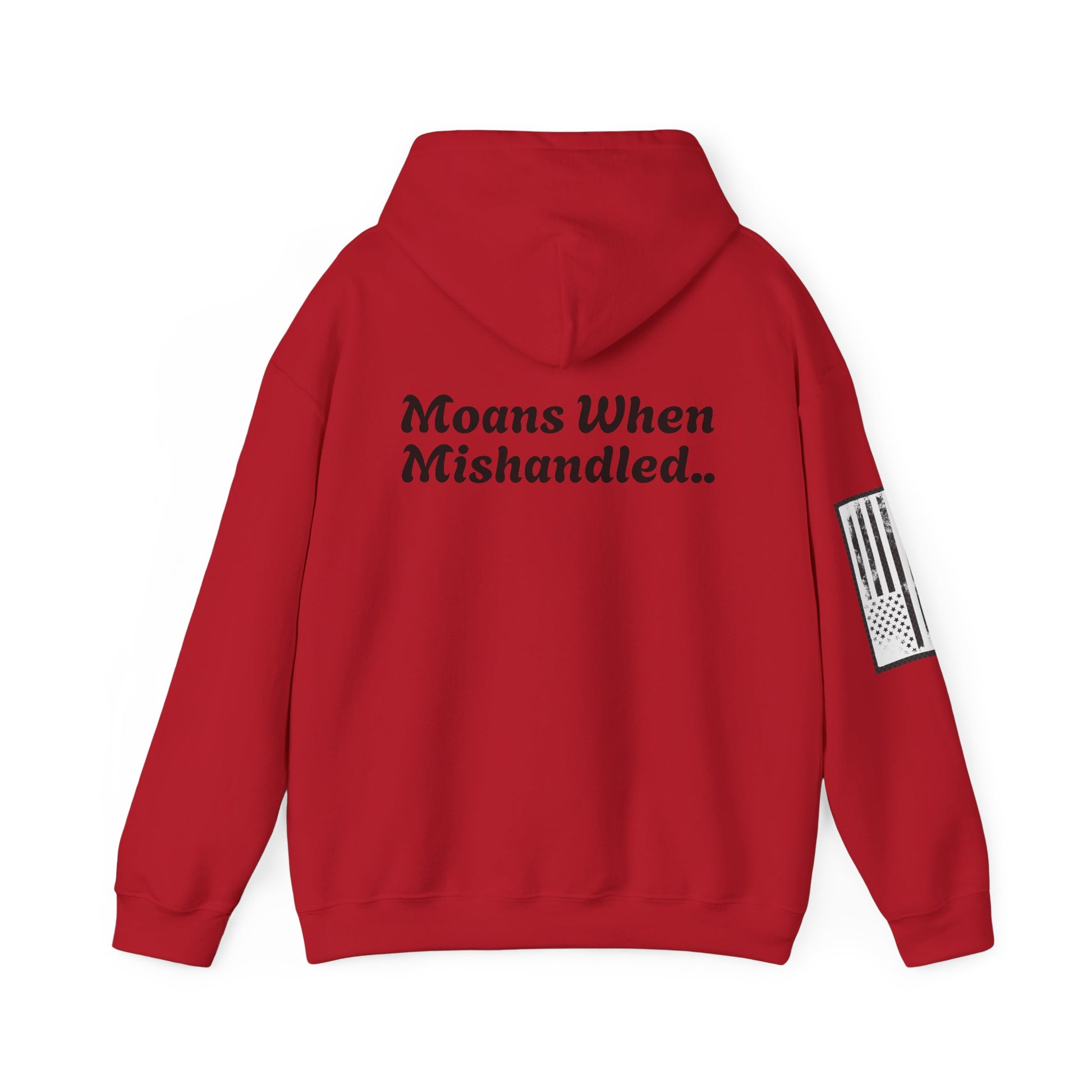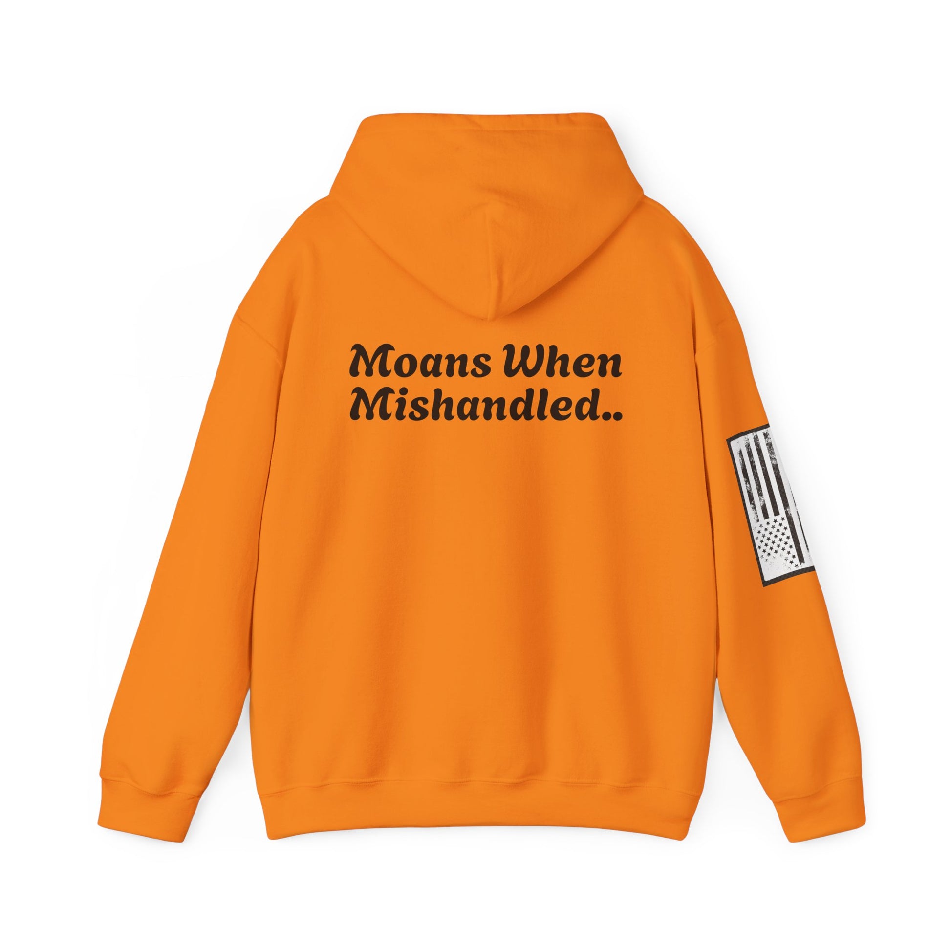 This unisex heavy blend hooded sweatshirt delivers comfort and durability with a humorous twist. Featuring the bold warning "Moans When Mishandled," it adds a cheeky, playful edge to your casual wardrobe. Perfect for those who appreciate a bit of crude humor, this hoodie combines quality fabric with a statement that’s sure to get laughs and attention wherever you go.